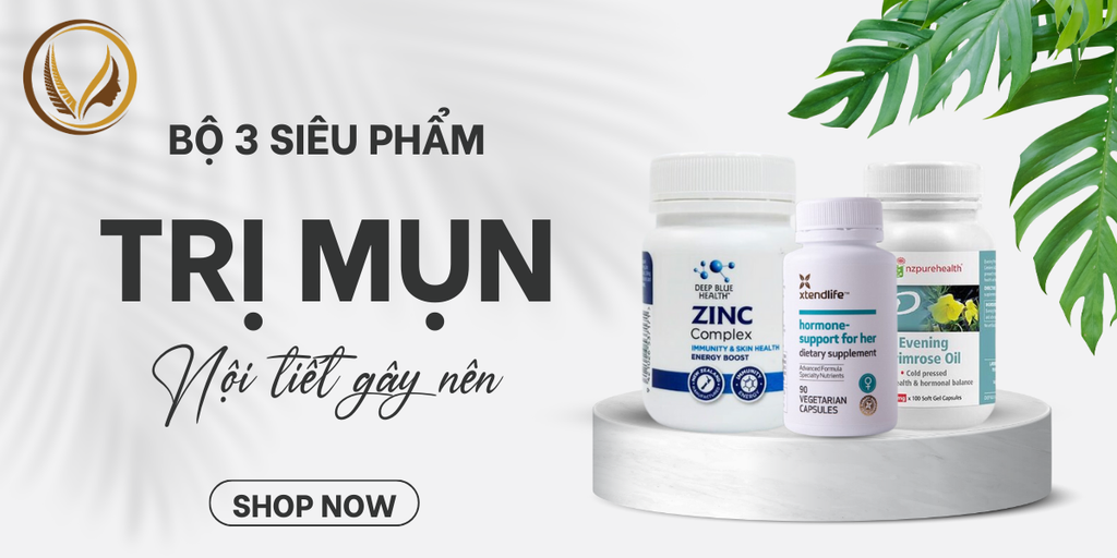 Các viên uống thực phẩm chức năng có thể là một cách hiệu quả để bổ sung dưỡng chất cho cơ thể và hỗ trợ trong việc trị mụn nội tiết. Viên uống kẽm tăng đề kháng, Deep Blue Health Zinc Complex, viên uống dầu hoa anh thảo Nz Pure Health Evening Primrose Oil và viên uống tăng nội tiết tố nữ Xtend Life Hormone Support For Her có thể cung cấp các thành phần cần thiết giúp cải thiện làn da và trị mụn.