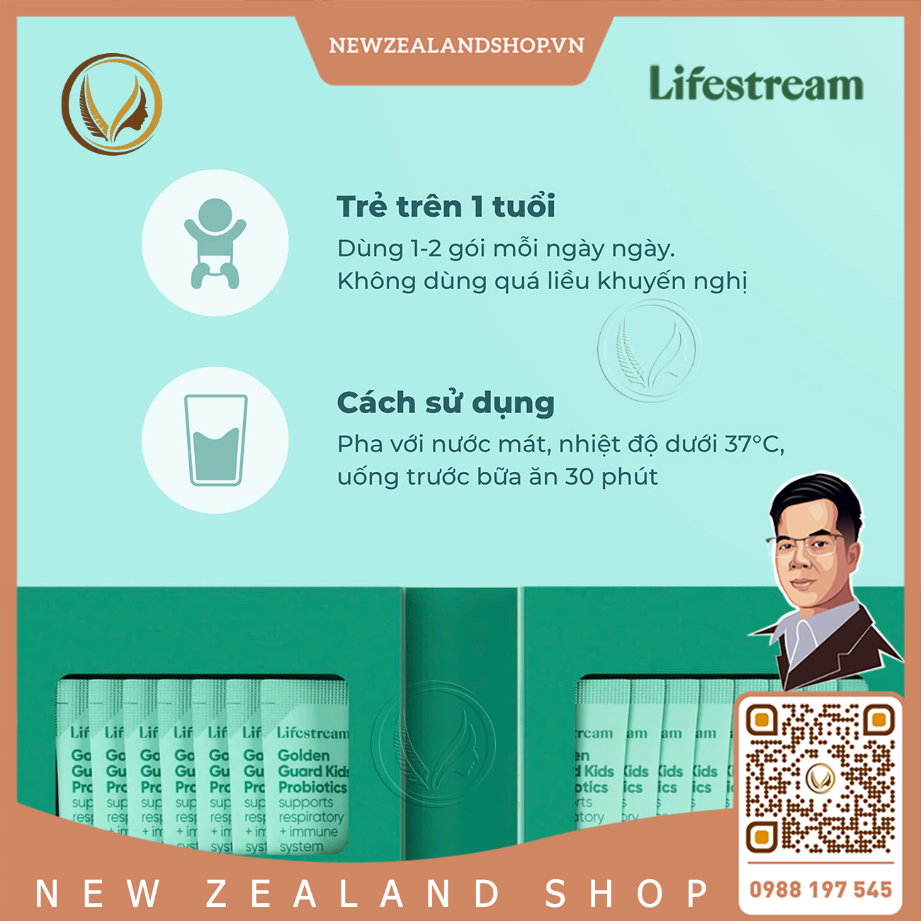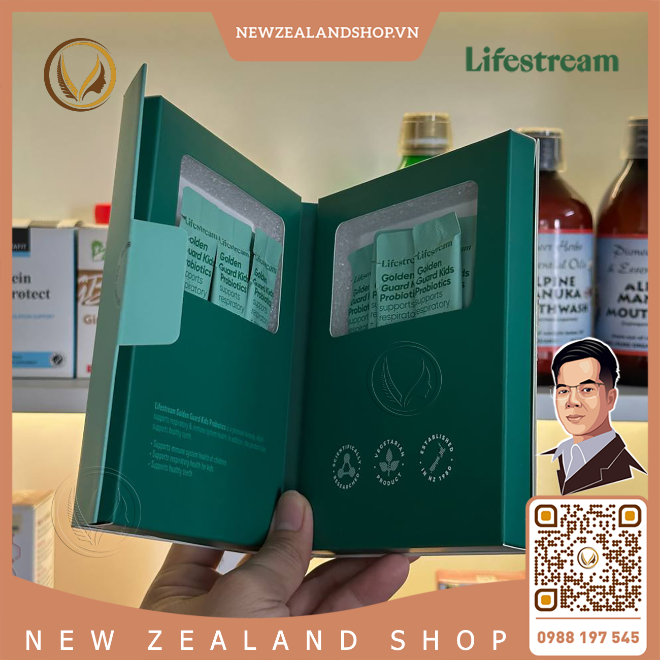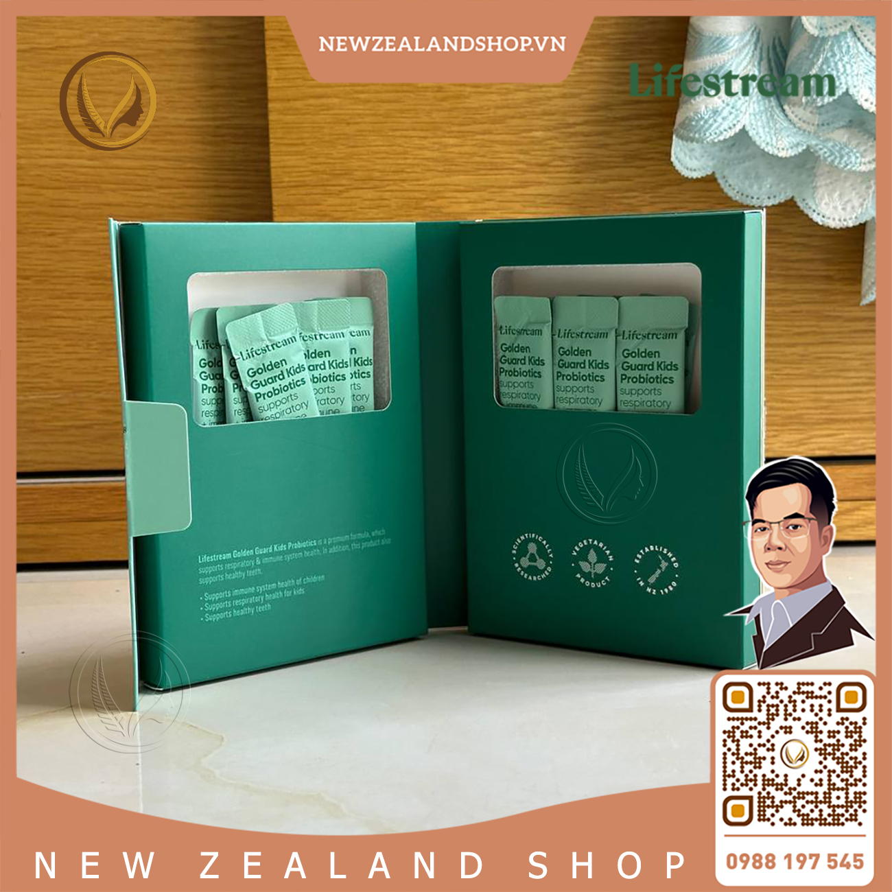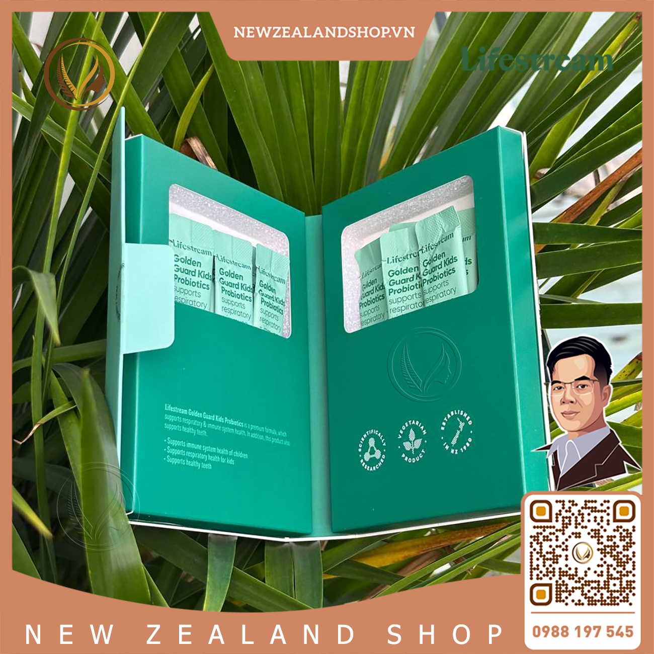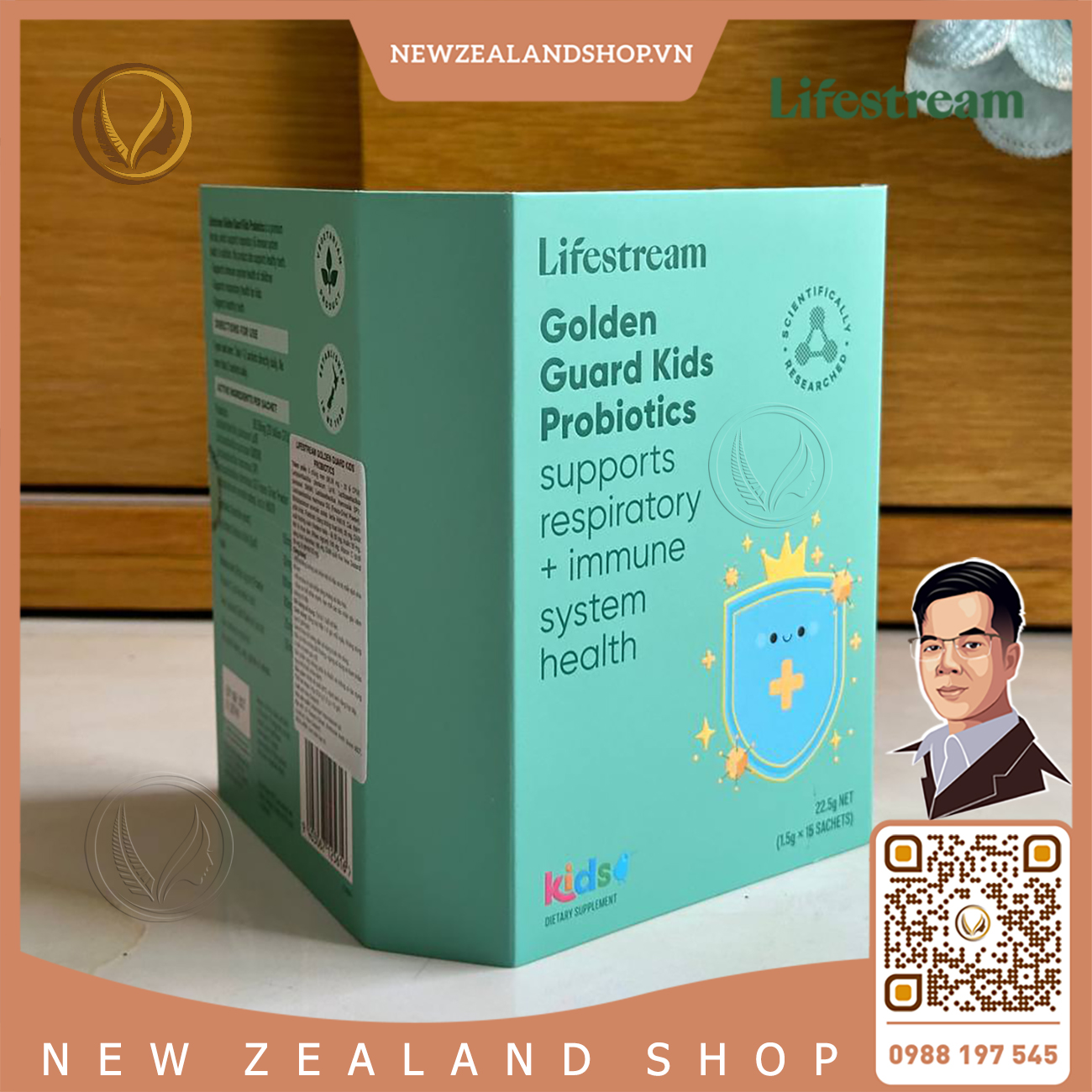 Lifestream Golden Guard Kids Probiotics là công thức cao cấp hỗ trợ sức khỏe hệ hô hấp và miễn dịch, đồng thời giúp răng chắc khỏe cho trẻ. Sản phẩm được phát triển dựa trên việc lựa chọn năm loại men vi sinh có hoạt tính cao từ 2000 chủng vi khuẩn, tuân thủ các tiêu chuẩn khoa học nghiêm ngặt, kết hợp cùng Epicor men vi sinh hậu sinh học được chiết xuất từ công nghệ lên men 75% của Mỹ và tinh chất kiwi vàng New Zealand. Nhờ đó, sản phẩm tạo ra một hàng rào bảo vệ tự nhiên trên niêm mạc đường hô hấp và ruột của bé, ngăn chặn các phản ứng dị ứng dây chuyền như dị ứng mũi hay dị ứng đường ruột.