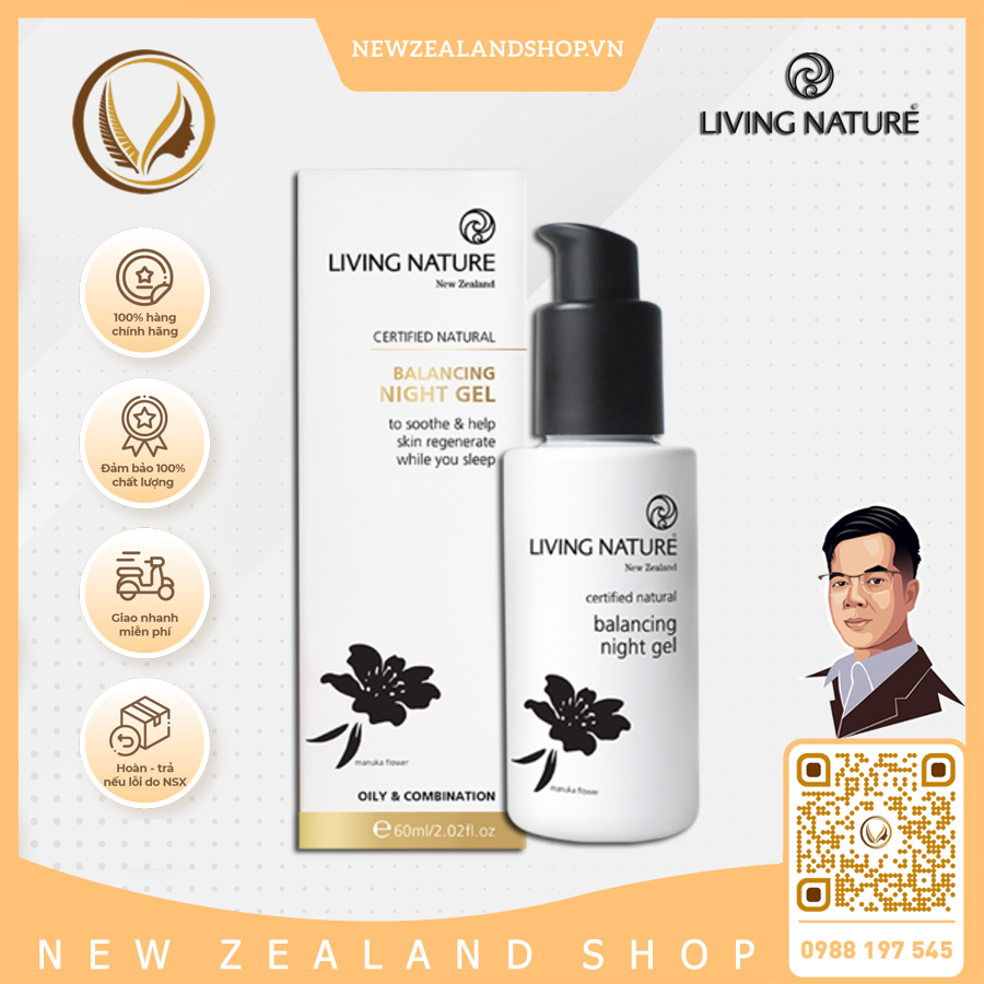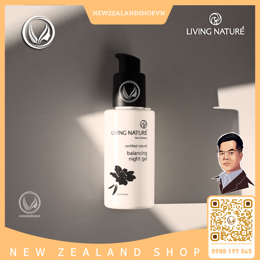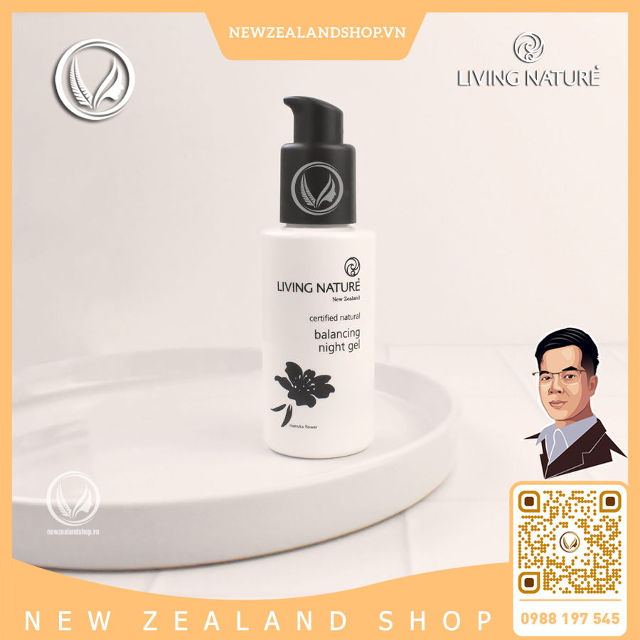 Gel dưỡng da ban đêm cho da mụn, dầu Living Nature Balancing Night Gel là loại kem dưỡng đắc giá với sự kết hợp hoàn hảo của dầu Manuka với khả năng kháng khuẩn, giảm viêm, làm dịu da, hạn chế mụn, chữa lành tổn thương da, nuôi dưỡng và giúp duy trì sức khỏe cho làn da. Balancing Night Gel còn chứa gel lanh Harakeke, đây là thành phần chuyên hỗ trợ dưỡng ẩm cho da nhờ cơ chế hydrat hóa, làm dịu và mát da. Hoạt chất Bisabolol được chiết xuất từ hoa cúc và gừng có trong gel dưỡng da Balancing Night Gel mang lại khả năng hydrat hóa (dưỡng ẩm sâu) và khôi phục lại sức sống cho da, đặc biệt da dầu nhờn và da dễ nổi mụn.