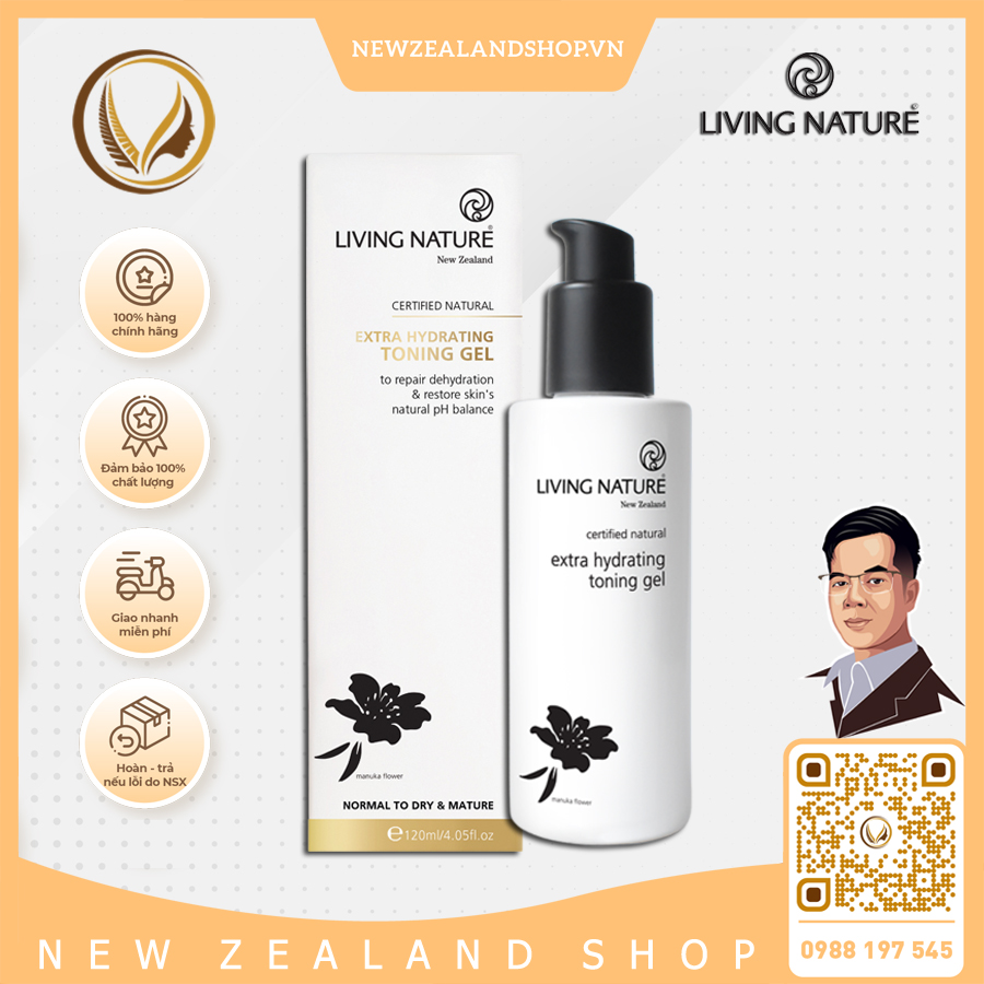 Trải qua quá trình thử nghiệm từ cơ quan phân tích sinh học nổi tiếng của Ý, tại phòng thí nghiệm ABICH đã cho thấy các hoạt chất thực vật được sử dụng trong Extra Hydrating Toning Gel có thể tăng tốc quá trình tái tạo và sửa chữa da. Nó chữa lành những tổn thương gây ra cho làn da của bạn trong ngày, tức là tổn thương do gốc tự do, mất độ ẩm và do tia cực tím từ ánh nắng mặt trời.Gel siêu dưỡng ẩm Living Nature Extra Hydrating Toning Gel bao gồm các đặc tính đặc biệt của gel harakeke, với vai trò làm da tươi mới, giảm căng thẳng và mất nước. Gel dưỡng ẩm này còn giúp thu nhỏ lỗ chân lông và cân bằng độ pH của da. Đồng thời, Extra Hydrating Toning Gel cũng chứa bisabolol chiết xuất từ hoa cúc và gừng mang lại khả năng hydrat hóa (dưỡng ẩm sâu) và khôi phục lại sức sống cho da, đặc biệt da thường và da khô. Extra Hydrating Toning Gel cũng giúp ngăn ngừa sản xuất dầu quá mức, nâng tông màu và tăng cường độ ẩm da một cách tự nhiên.