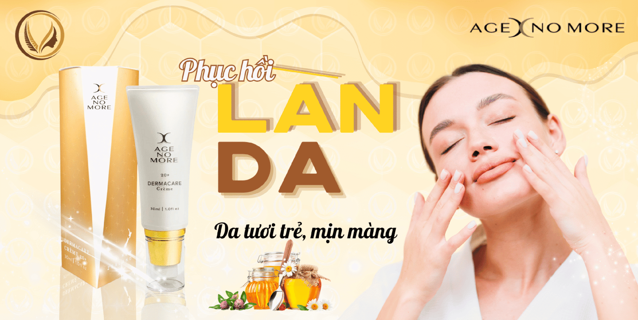 Age No More Dermacare Creme là giải pháp tối ưu để bảo vệ làn da khỏi những tác động từ môi trường, đồng thời thúc đẩy quá trình lành thương và kích thích sản sinh tế bào mới. Với hàm lượng cao mật ong Manuka, sản phẩm giúp phục hồi làn da một cách hiệu quả, mang lại làn da khỏe mạnh và tươi trẻ.