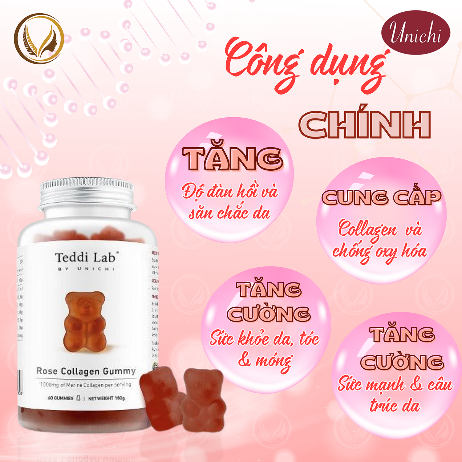 ❖ Công dụng Unichi Rose Collagen Gummy