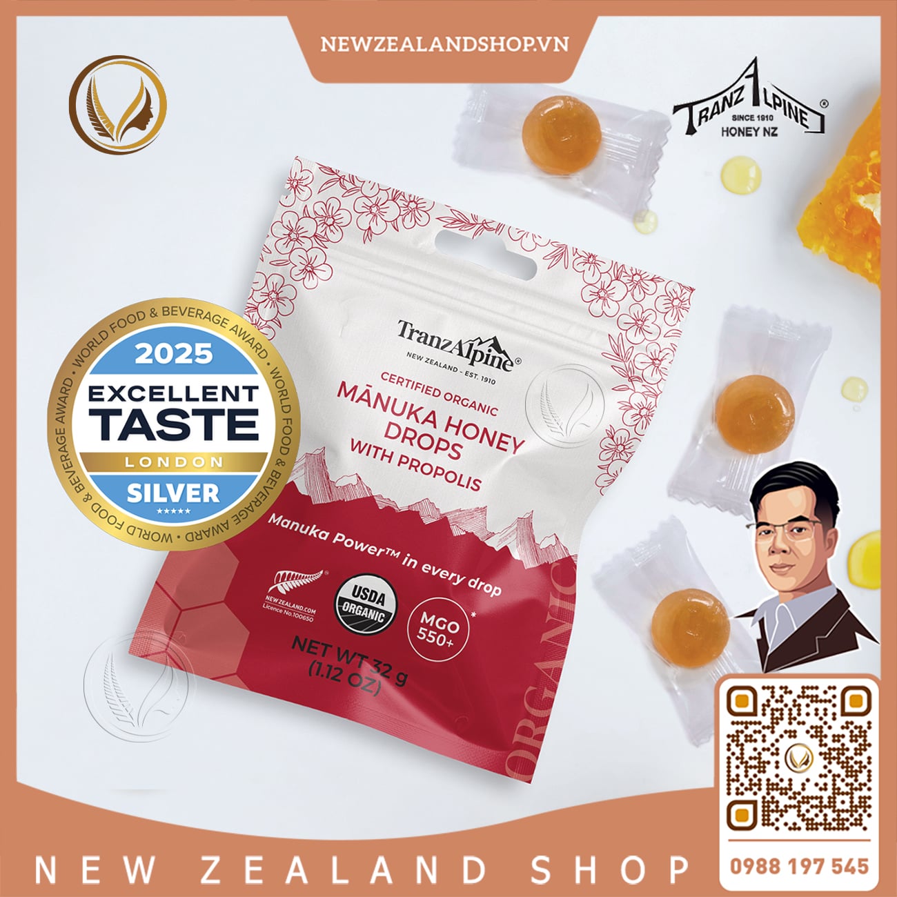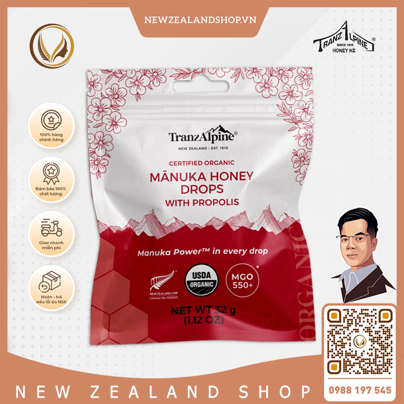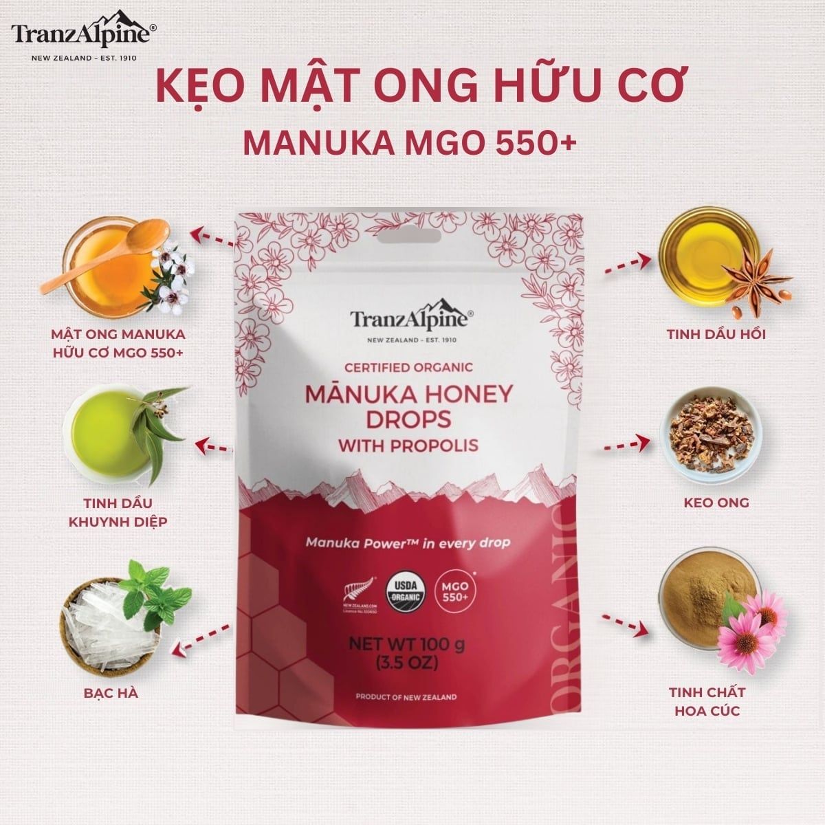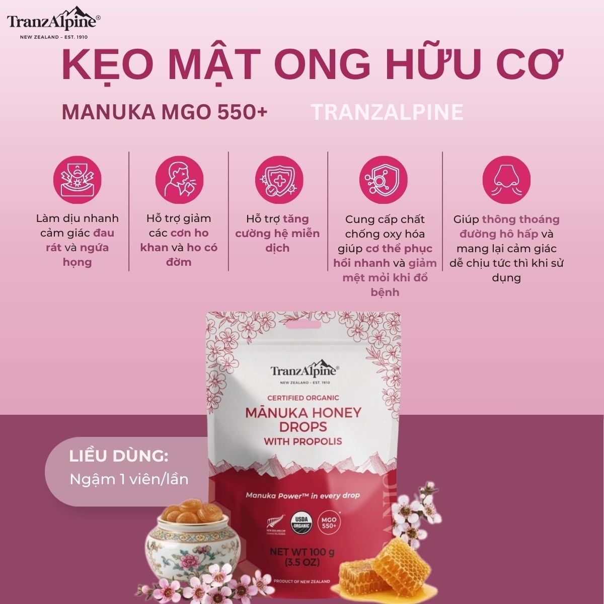❖ Công dụng TranzAlpine Organic Manuka Honey Drops with Propolis