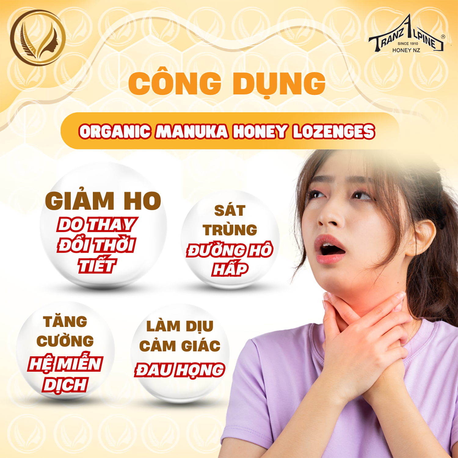❖ Công dụng TranzAlpine Organic Manuka Honey Lozenges With Propolis