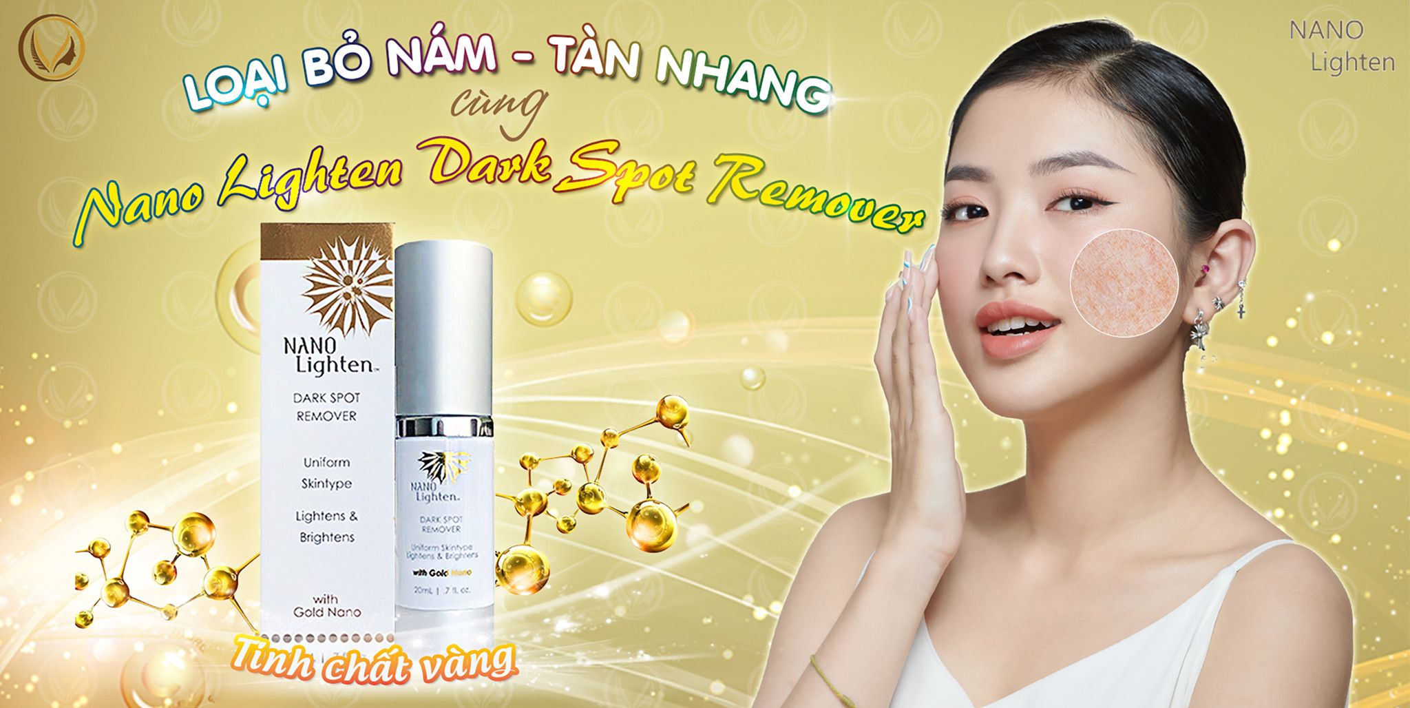 Nano Lighten Dark Spot Remover dạng phân tử cực nhỏ được bác sĩ khuyên dùng trong hỗ trợ làm mờ nám, tàn nhang, đốm nâu,…và đặc biệt rất an toàn cho mọi loại da. Công nghệ nano như là một tác nhân mạnh mẽ giúp sản phẩm vượt qua các thành phần sâu hơn qua da và giúp cải thiện tình trạng nám da, đốm nâu, kết quả có thể được nhìn thấy chỉ trong 15 - 21 ngày. Với hợp nhất từ tinh chất vàng (nano peptide) được sản xuất tại Mỹ, đã được thử nghiệm và được chứng nhận an toàn.