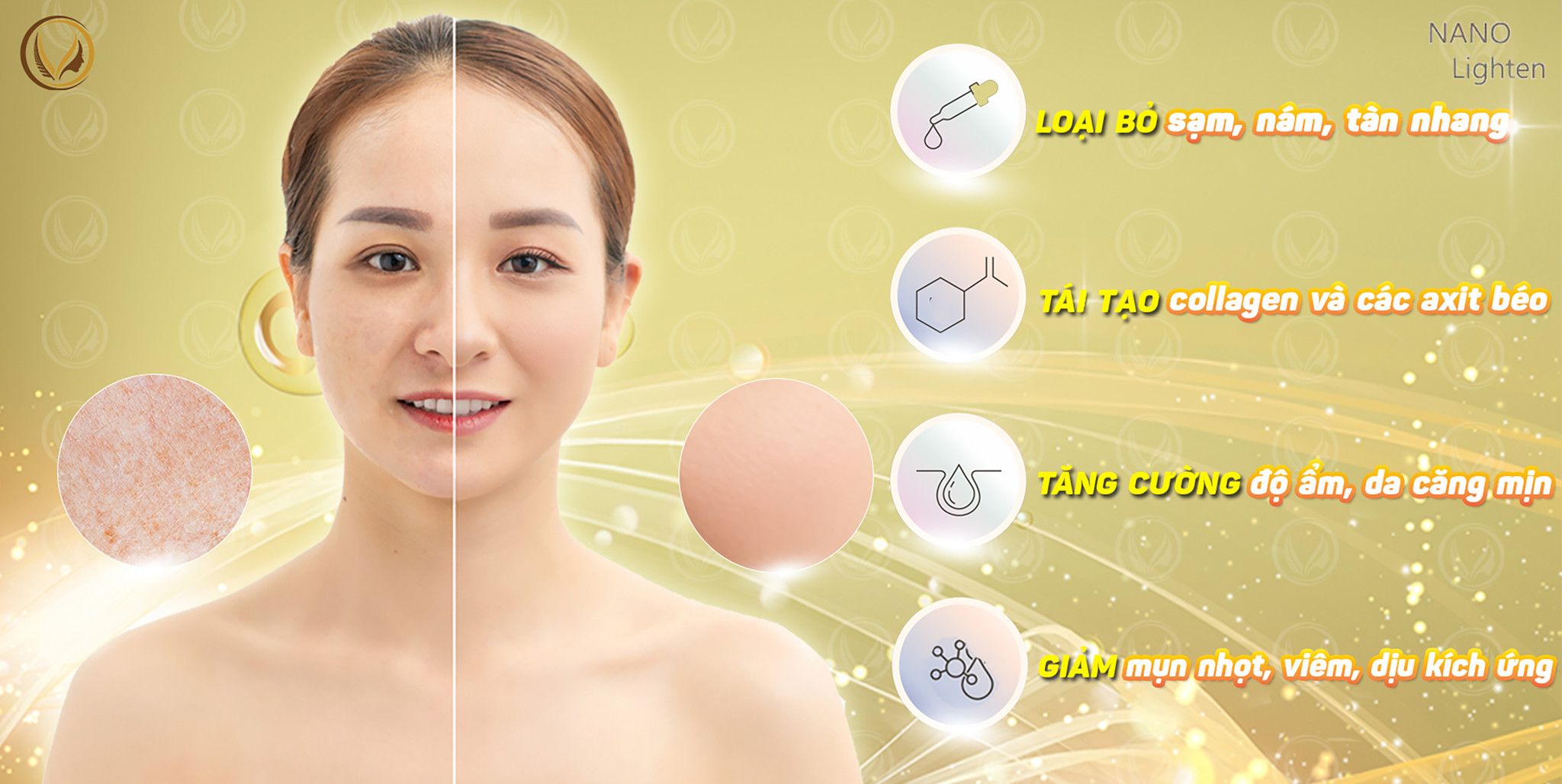 - Sử dụng các hạt phân tử cực nhỏ (nano) giúp thẩm thấu sâu qua da và mô mang lại hiệu quả điều trị nhanh chóng.
