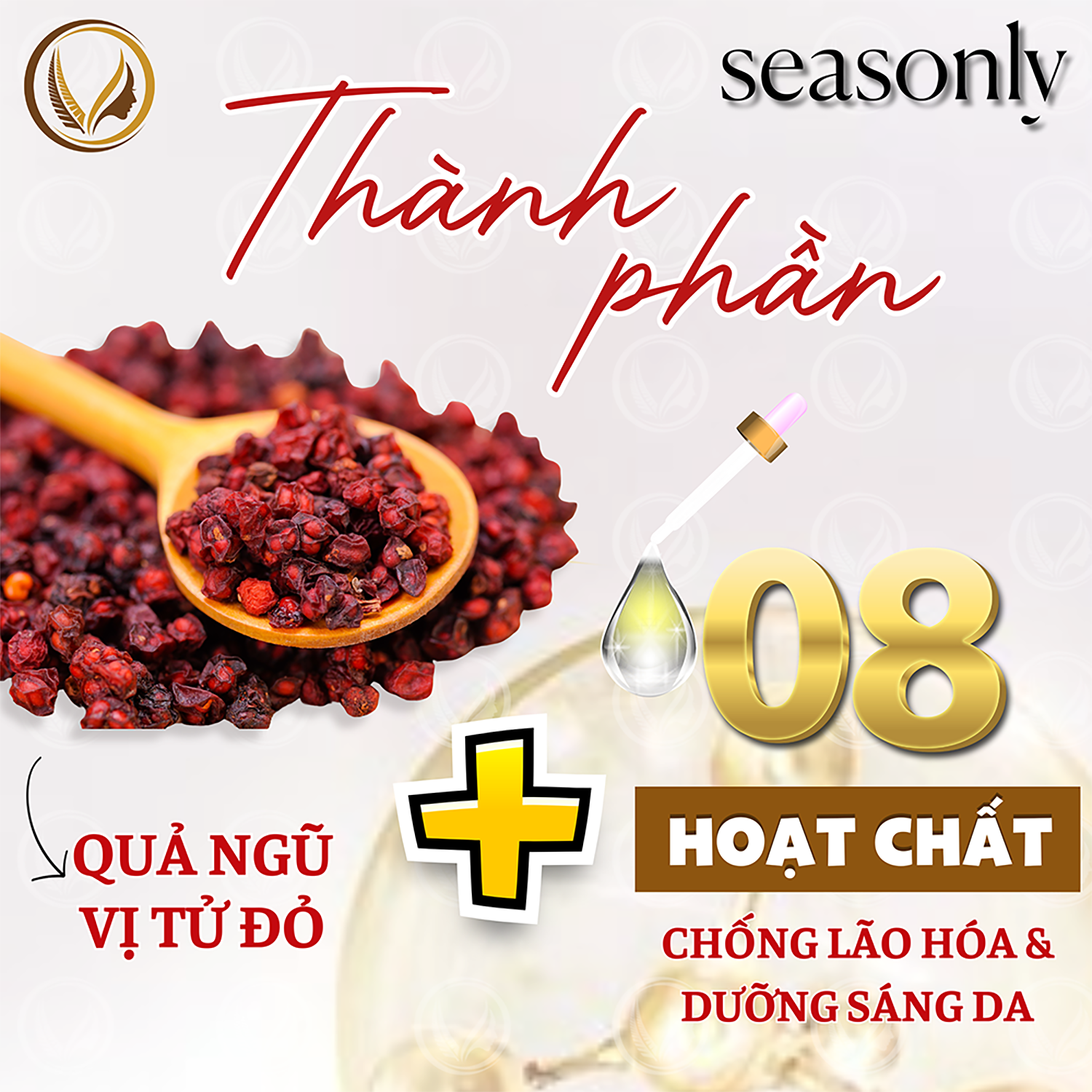Seasonly Sérum Anti-grisaille được tạo thành từ 99% các thành phần tự nhiên, là giải pháp hoàn hảo cho làn da bạn mong muốn. Với cấu trúc lỏng nhẹ, chứa chiết xuất từ Red Schisandra Berries một loại quả giàu chất chống oxi hóa, giúp làm sáng làn da bị tác động bởi yếu tố môi trường bên ngoài như ánh nắng mặt trời và khói bụi.