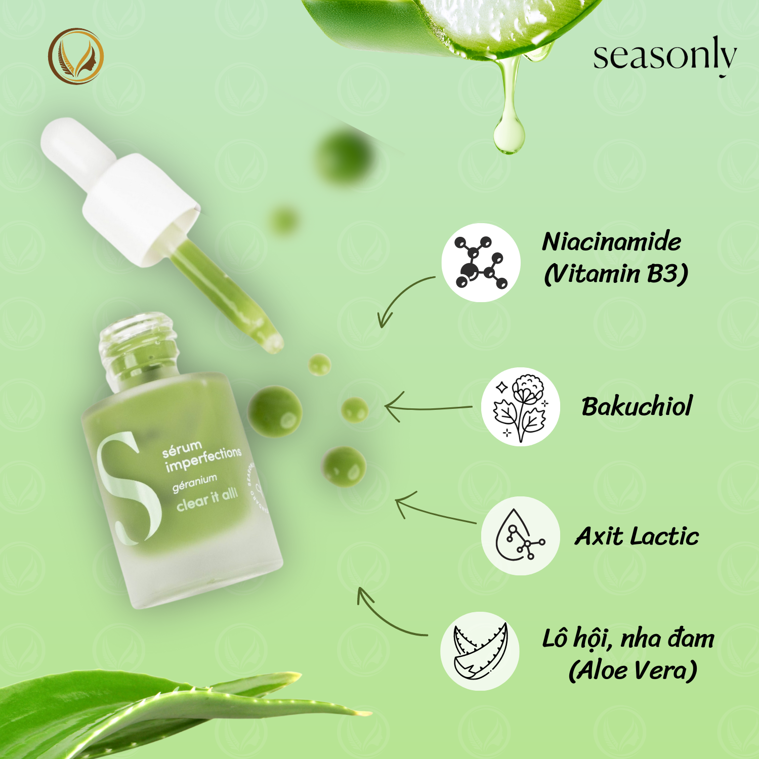- Sử dụng Seasonly Sérum Imperfections thường xuyên sẽ giúp cải thiện tình trạng mụn và làm cho làn da trở nên khỏe mạnh, sạch sẽ và mịn màng hơn.