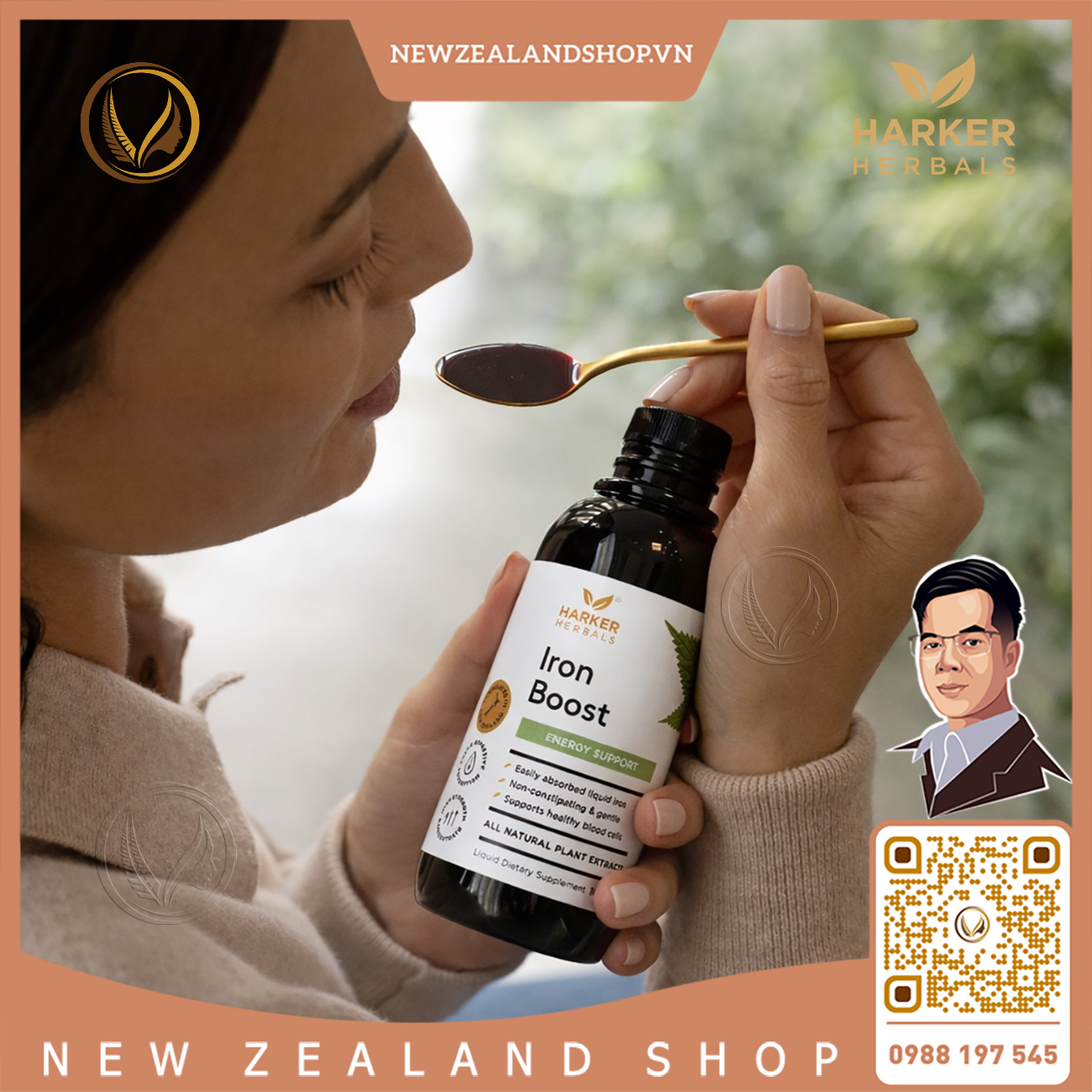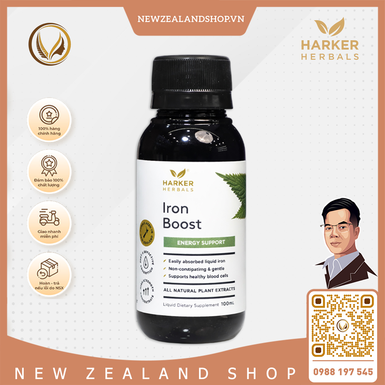 Harker Herbals Iron Boost là công thức bổ sung sắt sinh học dạng glycinate dễ hấp thu, không gây táo bón và dịu nhẹ với hệ tiêu hóa. Đây là lựa chọn lý tưởng cho người thiếu sắt, phụ nữ mang thai cho con bú, người ăn chay, trẻ em và người lớn đang cần duy trì mức sắt khỏe mạnh để hỗ trợ năng lượng và sản xuất hồng cầu.