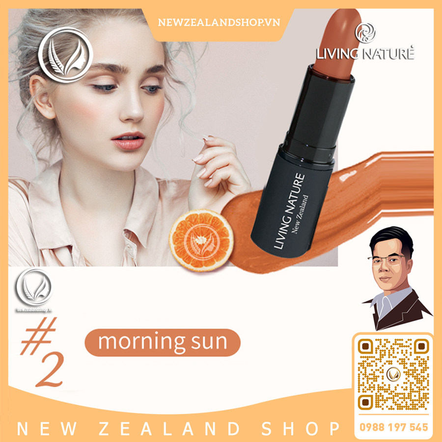 Son môi màu cam đất Living Nature Lipstick Morning Sun 02 mang đến cho các cô nàng một vẻ ngoài rạng rỡ, trẻ trung và năng động. Được sản xuất thủ công từ thành phần 100% tự nhiên và đã được chứng nhận. Living Nature Morning Sun 02 giúp mang đến đôi môi căng mọng, sắc cam đất thời thượng, đồng thời nuôi dưỡng và trẻ hóa đôi môi.Son môi màu cam đất Living Nature Lipstick Morning Sun 02 có màu cam đất vừa đẹp một cách đặc biệt, vừa che được khuyết điểm nếu chúng ta không may mắn sở hữu làn môi không được ưng ý. Những buổi họp trang trọng cho tới những ngày tụ họp bạn bè, màu son cam đất luôn làm tròn nhiệm vụ tô điểm cho bạn vẻ ngoài dịu dàng và không kém phần tươi tắn. Đối với son Living Nature Morning Sun màu cam đất, dù bạn có làn da sáng hay tối đều có thể biến mình thành thiên thần, nếu biết cách kết hợp son với màu môi, màu da của mình. Son môi màu cam đất Living Nature Lipstick Morning Sun 02 với công thức tự nhiên, son môi Living Nature có chất lượng cao nhất, không chứa chì, hương liệu hay các thành phần tổng hợp, mang lại màu sắc rực rỡ, khỏe mạnh cho đôi môi mà không có bất kỳ nguy hại nào. Được sản xuất tại Kerikeri, New Zealand, mỗi thỏi son đều được tự tay đổ ra và đóng gói hoàn chỉnh bởi một đội ngũ giàu kinh nghiệm. Tất cả các màu sắc và sáp nuôi dưỡng đều tự nhiên, đảm bảo độ mịn màng, cho bạn một nụ cười tuyệt đẹp.