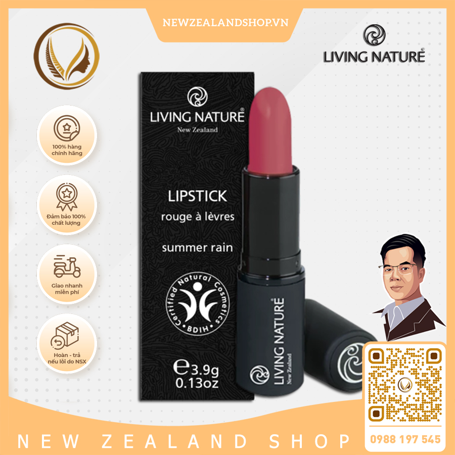Điểm độc đáo và an toàn của son môi màu hồng mận 100% tự nhiên Living Nature Lipstick Summer Rain 07