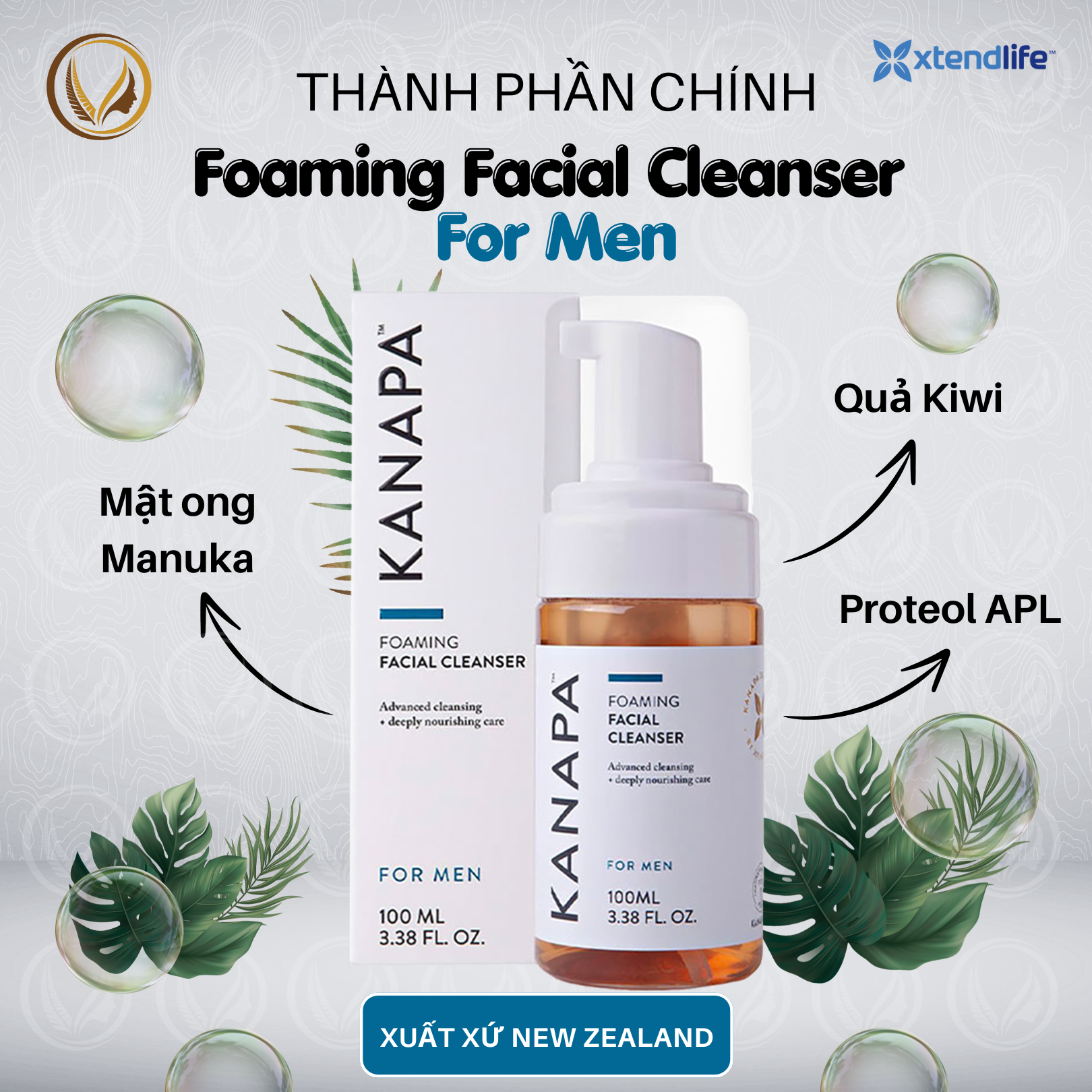 ❖ Công dụng Xtend Life Kanapa Foaming Facial Cleanser For Men