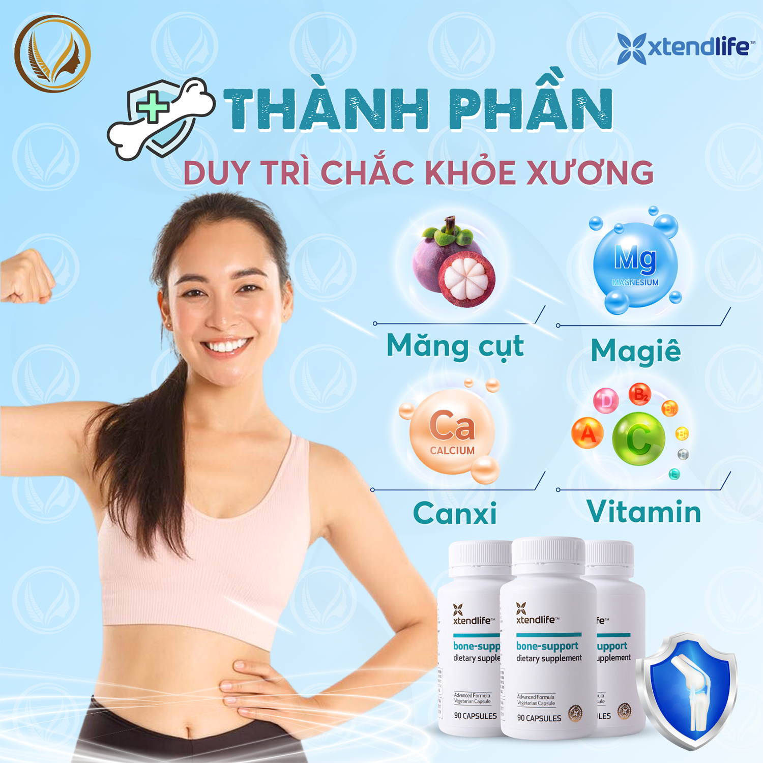 Xtend Life Bone Support là một sản phẩm chất lượng cao được phát triển đặc biệt để hỗ trợ xương của bạn. Công thức bổ sung xương này chứa canxi biển Aquamin® TG, đồng thời cung cấp các chất dinh dưỡng sinh học quan trọng như vitamin K2, strontium, chiết xuất măng cụt, vitamin D3 và 7 chất dinh dưỡng khác để nuôi dưỡng và bảo vệ sức khỏe xương của bạn.