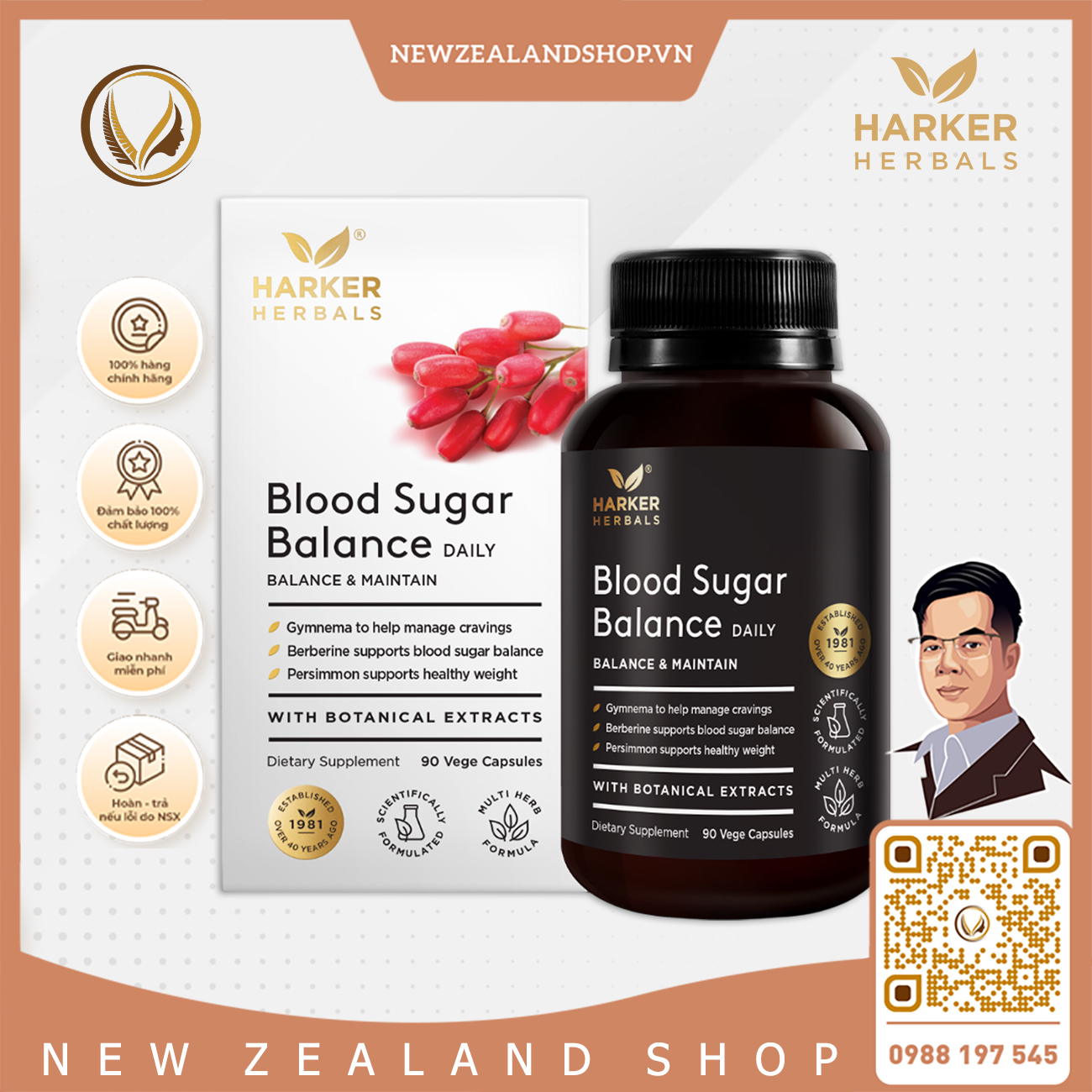 Harker Herbals Blood Sugar Balance là công thức hỗ trợ đường huyết tiên tiến của Harker Herbals, kết hợp ba thành phần nổi bật như Berberine – Gymnema – PerFix® Persimmon. Bộ ba này tạo nên cơ chế cộng hưởng mạnh mẽ giúp cân bằng đường huyết, kiểm soát cảm giác thèm đường và hỗ trợ quá trình chuyển hóa chất béo.