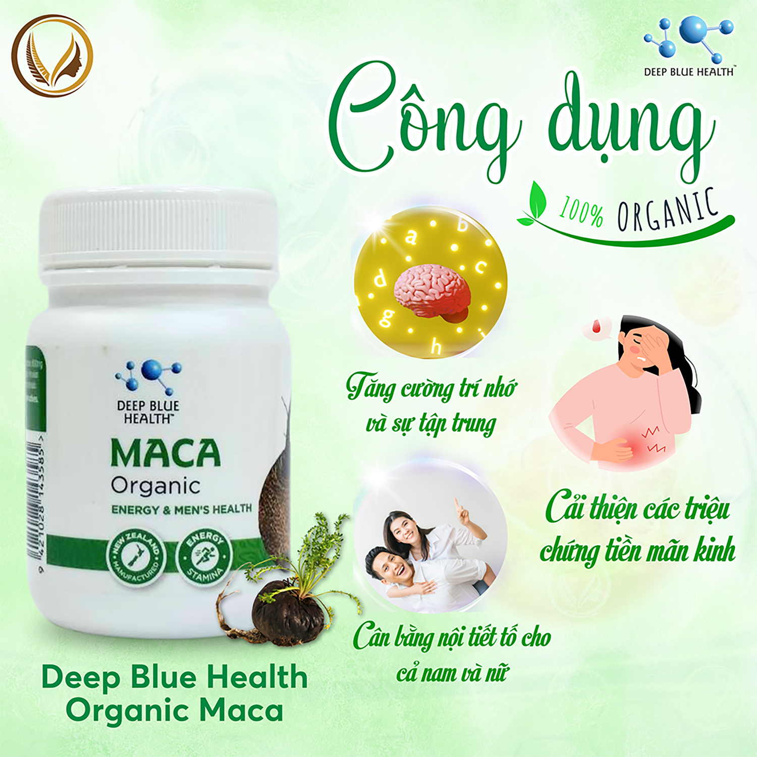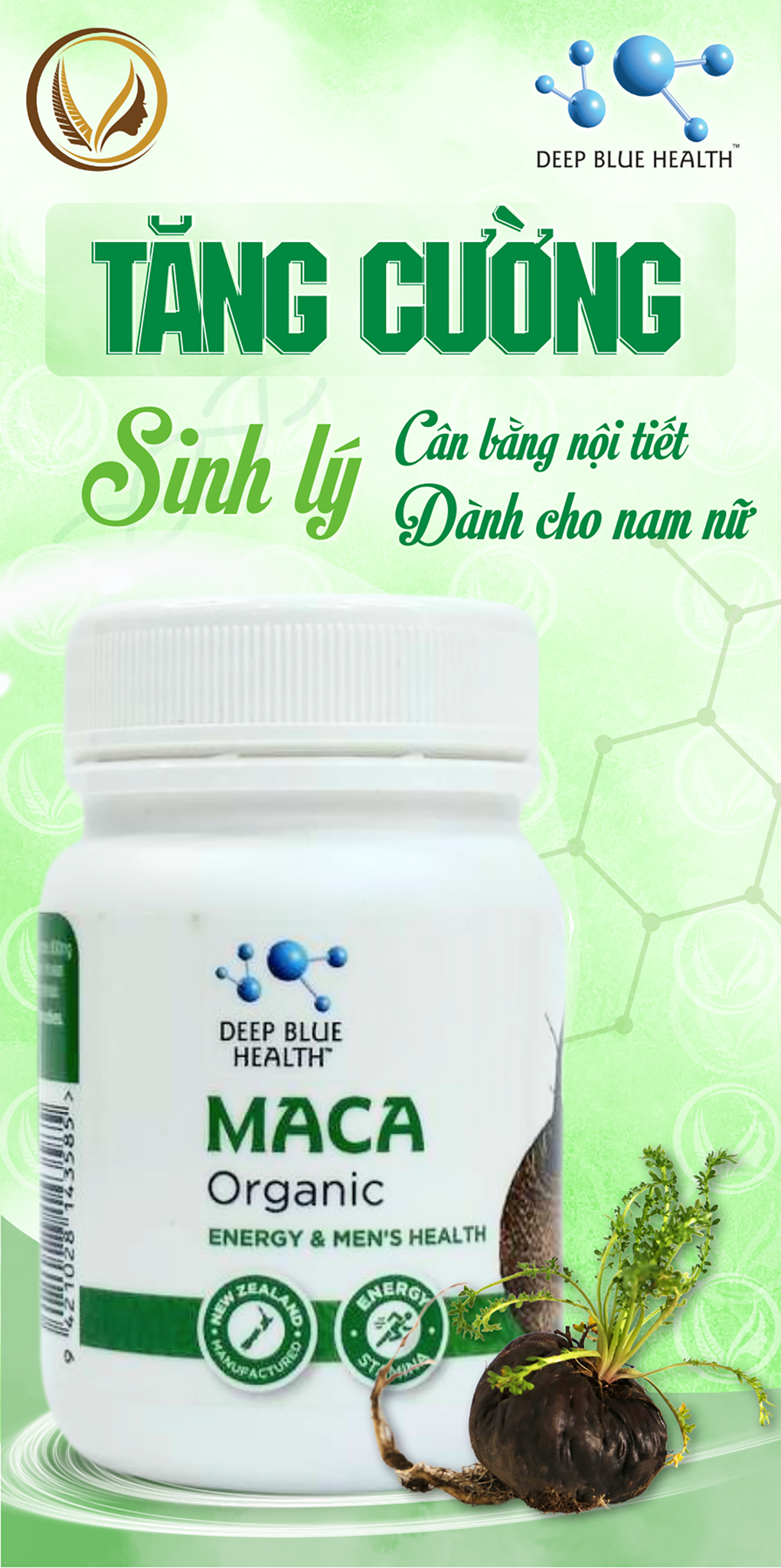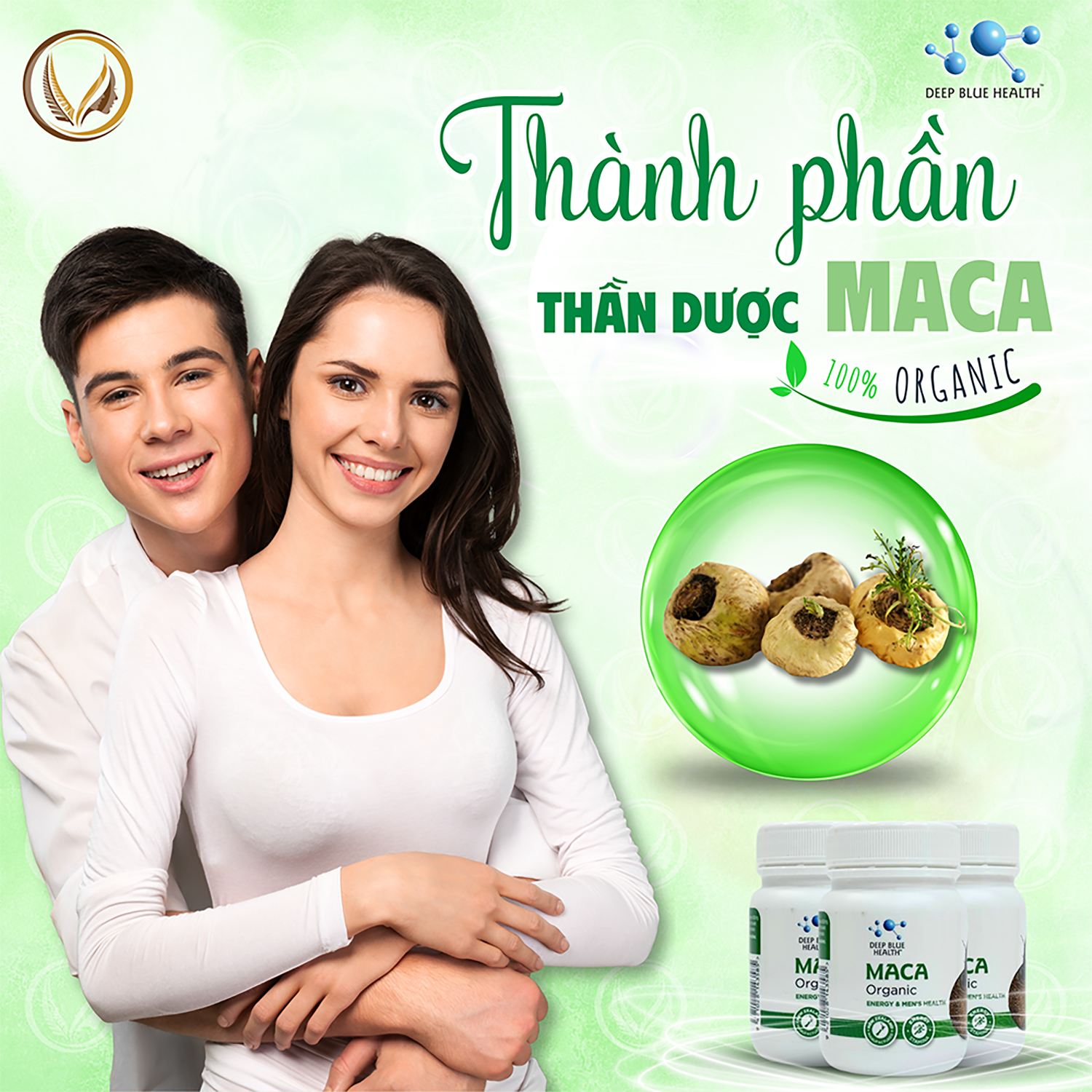 Deep Blue Health Organic Maca cải thiện khả năng cương dương, ham muốn tình dục, tăng khoái cảm, cân bằng nội tiết tố ở cả nam và nữ. Việc sử dụng thảo dược trong tăng cường thể lực và sinh lý nam từ xưa đến nay không còn là chuyện cũ. Trong số các dược liệu tốt cho nam giới, củ Maca được ví như một “thần dược” bởi công dụng tuyệt vời mà nó mang lại. Deep Blue Health Organic Black Maca được bào chế với củ maca thu hoạch từ độ cao cực kỳ cao ở Peru và được sử dụng vì lợi ích cung cấp năng lượng, cân bằng nội tiết tố và tăng cường chức năng sinh lý ở cả nam và nữ.