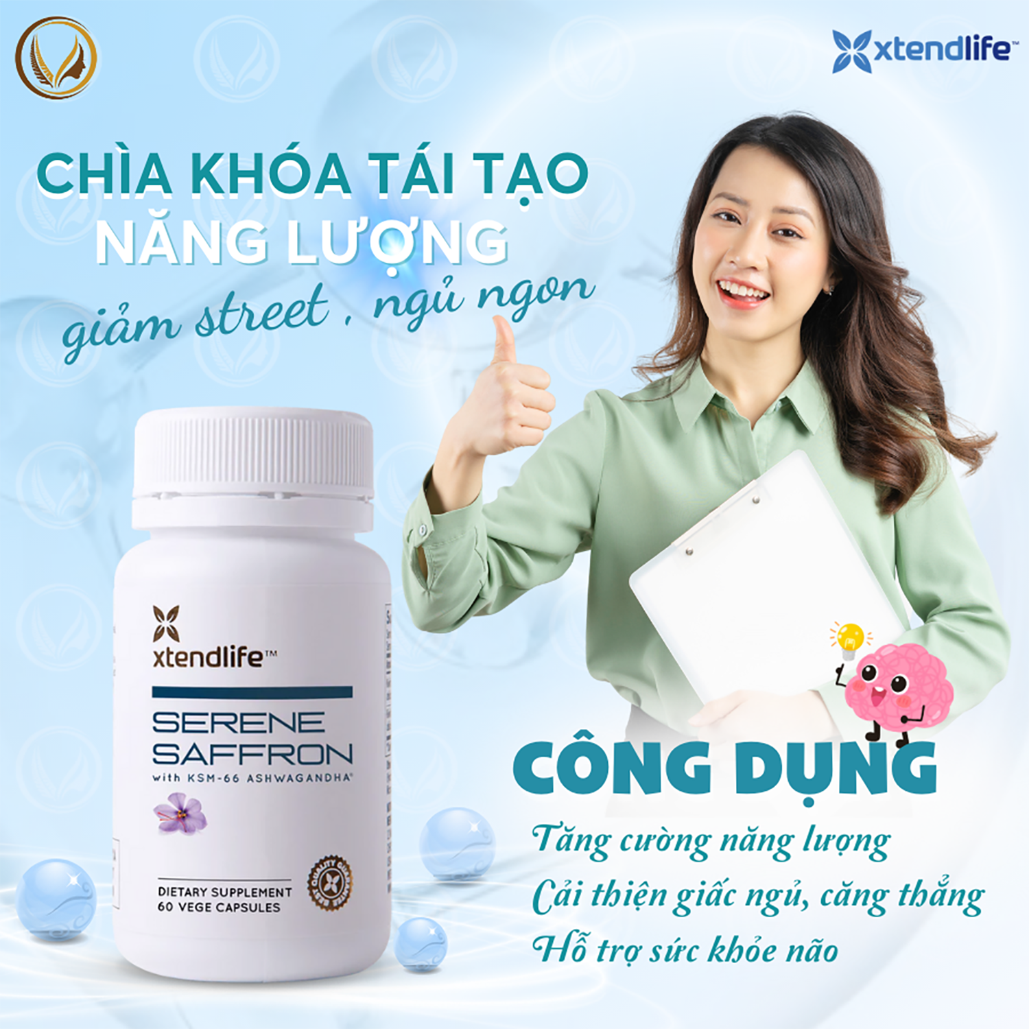 - Quản lý căng thẳng: Saffron và Ashwagandha, Serene Saffron giúp điều chỉnh giải phóng cortisol, giảm căng thẳng và ngăn ngừa kiệt sức.