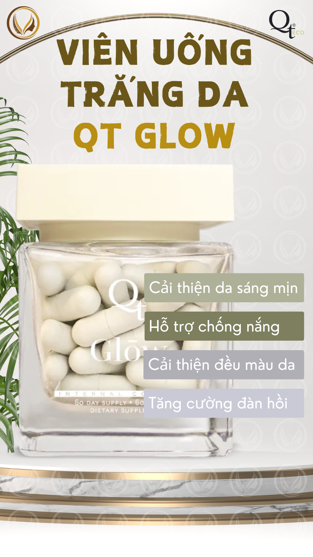 Viên uống trắng da, làm đều màu da toàn thân QT Glow