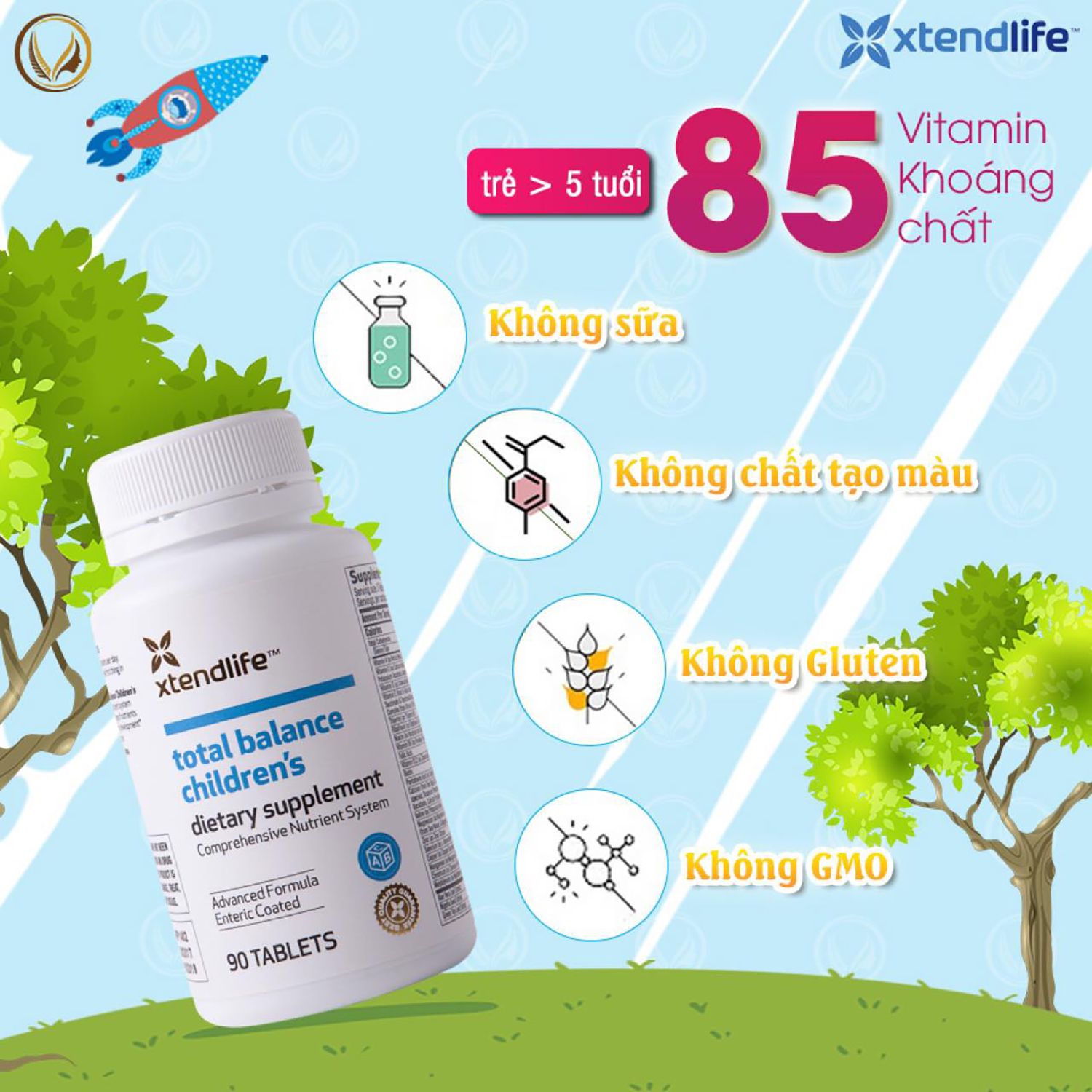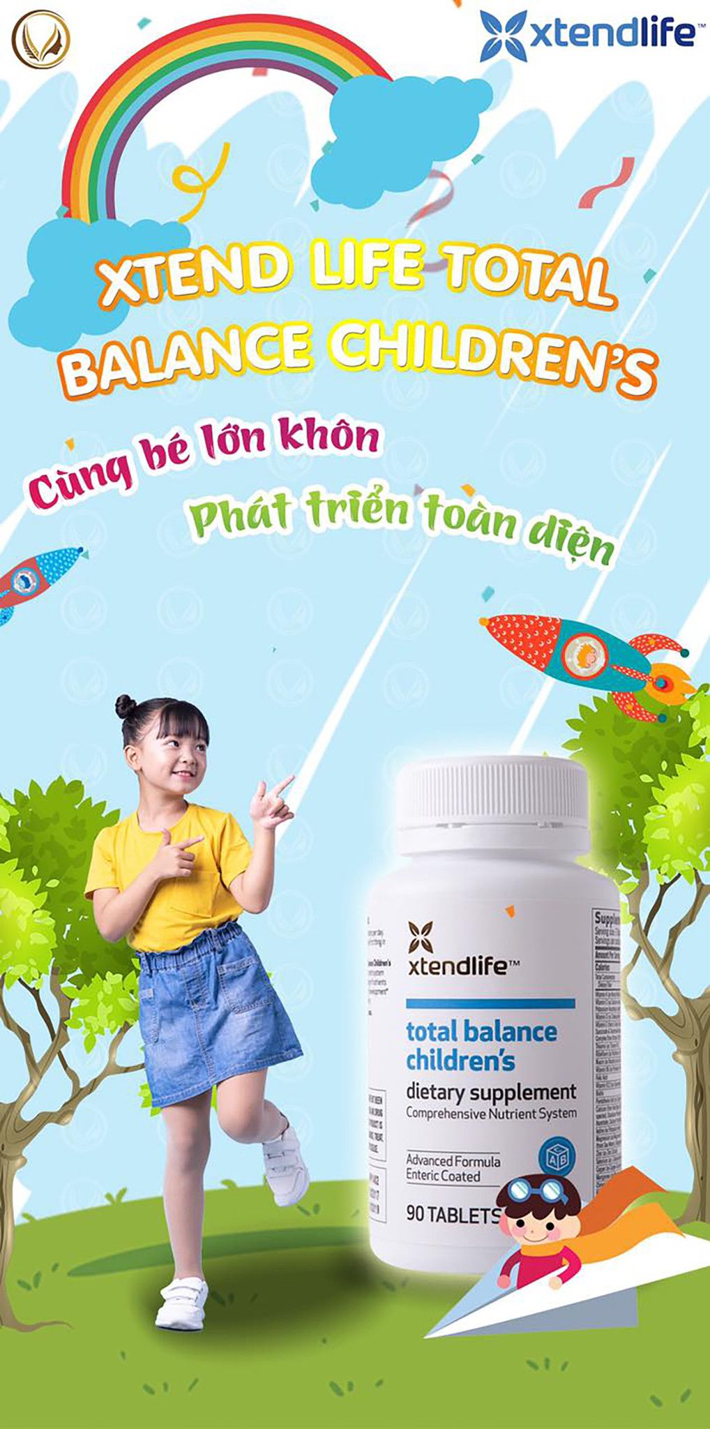 Xtend Life Total Balance Children’s có hệ thống chất dinh dưỡng hoàn chỉnh được điều chế đặc biệt để hỗ trợ nhu cầu dinh dưỡng của trẻ em và trẻ sơ sinh. Cung cấp các vitamin và khoáng chất mà nhiều trẻ em đang thiếu, bao gồm vitamin B, vitamin A, C, E, D3, canxi, magie, kẽm, selen và cùng với nhiều loại khác. Bảng công thức của Xtend Life Total Balance Children’s chỉ gồm những thành phần tự nhiên, sinh học có sẵn tốt nhất mới được đưa vào. Và các thành phần này được nghiên cứu đặc biệt để đảm bảo hàm lượng ở mức phù hợp cho một đứa trẻ đang lớn. Công thức đặc biệt với 85 vitamin, khoáng chất và nguyên tố vi lượng, rất dễ sử dụng và giúp trẻ phát triển một cách tối đa.