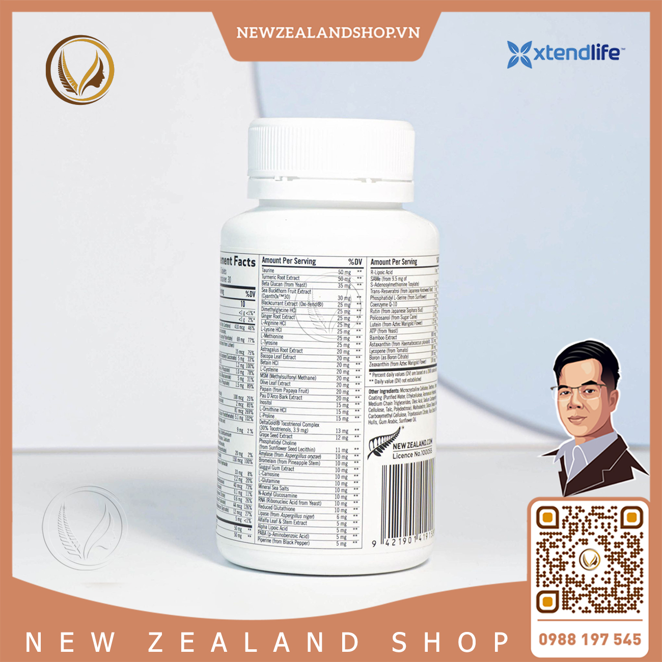 | Turmeric Root Extract (Chiết xuất rễ nghệ) (từ rễ Curcuma longa ) (cung cấp 47,5 mg Curcuminoids) | 50 mg | ** |